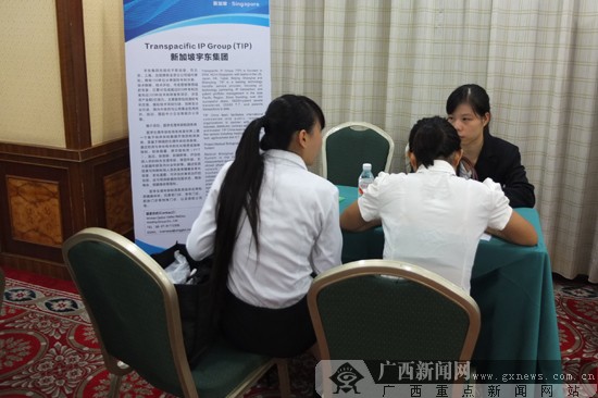参会企业现场洽谈。广西新闻网见习记者 蓝于涵 摄
