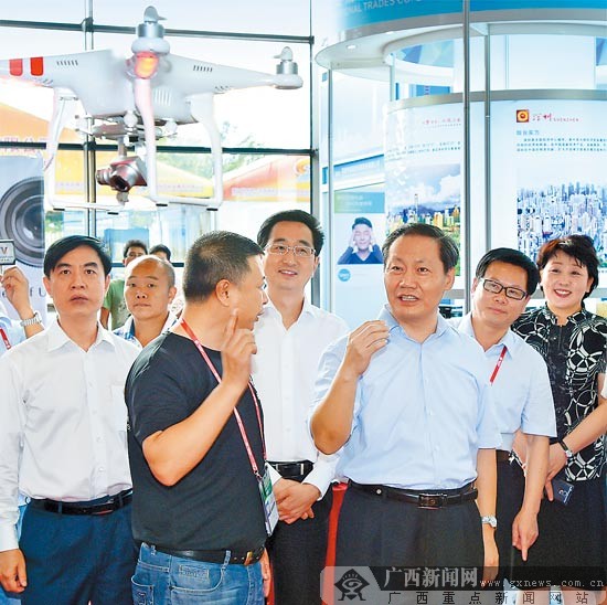 9月17日下午,自治区党委书记、自治区人大常委会主任彭清华参观第十一届中国-东盟博览会展馆。在先进技术展厅,彭清华兴致勃勃地与参展客商亲切交流,详细询问产品功能和生产销售情况。记者 黄 克/摄