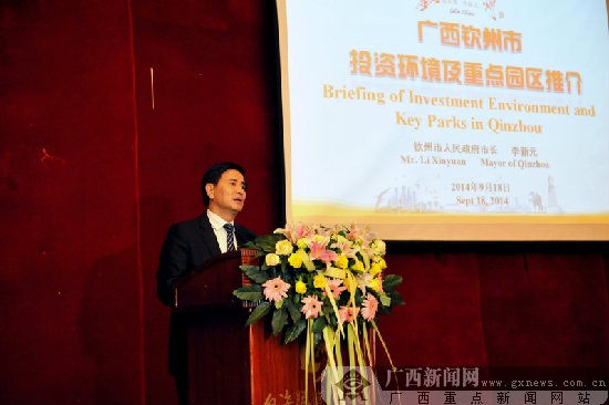钦州市市长李新元向马来西亚总理特使黄家定一行推介钦州  广西新闻网记者 黄启超摄
