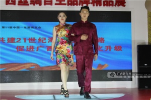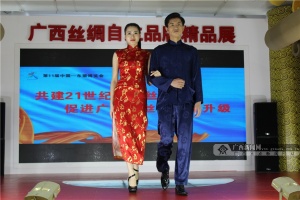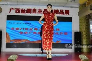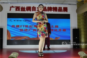 广西新闻网南宁9月18日讯(记者 黄玲娜 实习生 覃秋婷)9月18日下午,记者在广西展览馆农业展馆二楼展区被动听音乐吸引,原来第11届中国-东盟博览会农业展举办广西丝绸自主品牌精品旗袍秀正在进行。