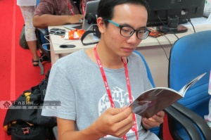 广西新闻网记者利用休息时间为接下来的采访做准备。 广西新闻网记者 张璐 摄