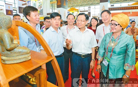 9月18日上午,自治区主席陈武来到南宁国际会展中心参观第十一届中国-东盟博览会展馆。在印尼馆,陈武向客商了解东盟特色产品参展交易情况,并鼓励他们借助东博会进入广阔的中国市场。 记者 梁凯昌/摄