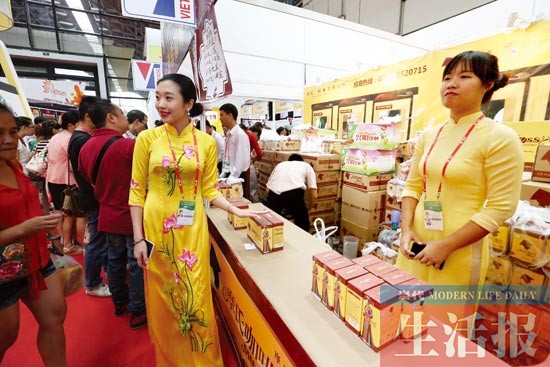 看 新、缅、柬、文、菲、老、印尼等商品馆 贝壳制灯吸眼球 树皮作画难释手 东南亚国家的特色手工艺品也让不少人青睐。在13号展厅菲律宾展位上,一种干花装饰品吸引了不少年轻人。在这个干花装饰品展位,各种各样的花晒干做成标本,在方格中整齐地摆放,形成了“天然的观赏”,在这里,不仅有钟表、镜子周围被鲜花包裹,茶托的玻璃下面藏着鲜花,首饰盒上面的顶部覆盖着鲜花,彻底让你眼花缭乱。 有干花制成的手工艺品,还有树皮制成的挂画。在14号馆老挝展位,树皮和树叶组成的挂画让很多人爱不释手。大树上枝繁叶茂,小鸟绕着大树在飞,而山羊则在树下悠闲地散步。同时,老板还带来了各种精致的小玩意,如树皮做的礼盒,信封、手袋和小挂饰,如果你喜欢把玩精美小手工,相信这里会有你的“菜”。 同样在老挝展位,一种金丝草编织成的手提包备受欢迎。这种手提包体型小,并且黑白相间,朴素自然。据了解,金丝草长在高高的树冠上,而当地人采摘下来后,经过加工干燥,之后手工才编制成了这一款包,当然,这款小小的包价格也不便宜,如果喜欢手工编织包包的人不妨可以考虑一下。此外,老挝的展位上还展示了五颜六色的手工饰品,这些饰品都是用毛线钩织、碎步拼成,有戒指、手链、项链、风铃等,充满了浓郁的异国风情。 而在15号印度尼西亚馆,你还可以看看一种贝壳制成的灯。在圆球上,初一看,似乎是一朵朵白色的玫瑰花紧紧环绕着,然后走进一看,用贝壳做成的玫瑰花的造型肯定会吸引你的眼球,圆球中包裹的灯发出了淡淡的光亮。在这个展位上,各式各样的贝壳造型台灯让人眼花缭乱,同时还有用贝壳镶边的镜子,贝壳的肥皂盒和洗手盆,如果在洗手间装上这些,海洋的气息迎面而来有没有? 大伙都知道葡萄是攀藤长在高架子上,你见过长在花盆里还能结出硕大果实的葡萄吗?在3号先进技术展就有。现场的负责人告诉记者,通过科技改良嫁接,能把葡萄种植培育成盆栽景观,供老百姓家庭观赏。这边是葡萄,那边则是百合花,同样是经过了科技改良,一家来自云南的参展商培育出的百合花颜色比普通百合花要娇艳很多,香味也更浓郁了,“它的花期也比较长,一般20天左右才凋谢,而普通的1星期就枯萎了。”参展商说。 喝 到越南馆品咖啡 摩氏咖啡亮点多 肉骨茶美味无比 越南咖啡 说了吃的,再找点喝的。咖啡一直是东博会上的“常客”,如果你只品尝过美国的苦咖啡,那你就OUT了。在东南亚,越南咖啡也很受年轻人的喜欢。在6号越南馆,主打的摩氏咖啡前面绝对让你眼前一亮,身穿越南民族服饰的姑娘正在邀请观众品尝。据了解,很多速溶咖啡都是使用的一种咖啡豆,摩氏咖啡特色就在于精选的咖啡豆是罗布斯塔与阿拉比卡两种豆种,之后经过研磨和精确配比,一杯香浓的咖啡出炉了。 本届东博会上,好喝的其实不止咖啡。就拿马来西亚馆的肉骨茶汤料来说,它就能带给你甘香的味道。据介绍,肉骨茶是马来西亚的美食之一,它以猪肉和猪骨配合中药煲成汤底,口感香浓,味道独特。由于汤料里加入有当归、枸杞、党参、茴香、八角等原料,整个肉骨茶汤还有治病祛寒抗风湿的功效。现场展示的肉骨茶汤料以小袋包装,每袋售价在15元至20元之间。