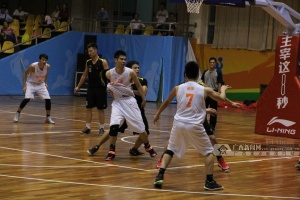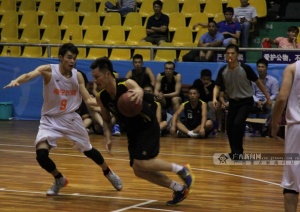 10月24日,2014年第二届“南宁农信杯”男子篮球赛主办方南宁农信社对战广西荣业。广西新闻网记者韩定宏摄