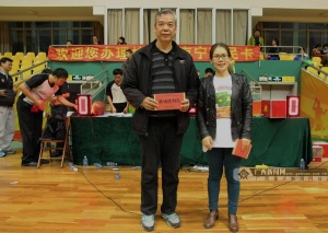 南宁市区农村信用合作联社相关负责人为威壮青年队颁奖。广西新闻网记者韩定宏摄