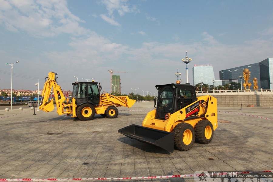 两位驾驶员在一块小场地中演示柳工机械的灵活操控性。