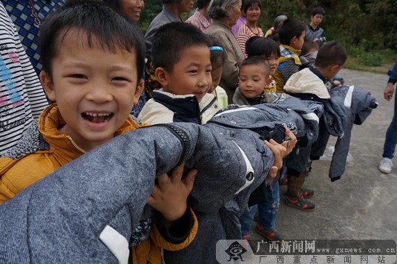 拿到了新棉衣的孩子们。广西新闻网记者 邓昶摄