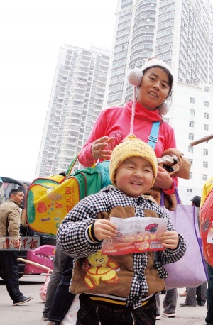 黄建雄一家是第一次乘坐爱心包车。他告诉记者,他一家人已来南宁三四年了,他在工地上打零工,妻子照看两个小孩,家里还有4位老人要照料,经济负担很重。这次能得到4张免费的车票,他心怀感激:“春运期间,一张去全州的车票要近200元呢,可省了不少钱。”