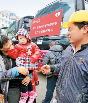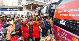 今年,是可口可乐(广西)饮料有限公司参与爱心车票活动的第4个年头。该公司今年捐赠的10辆爱心包车中,其中7辆用来送贫困学子回家,3辆用来送农民工朋友。发车仪式上,梁正芸说,该公司希望为城市的建设者及其家人尽一份心。当天,该公司还为所有乘客准备了一提(两瓶)饮品,为他们送上春节的祝福。
