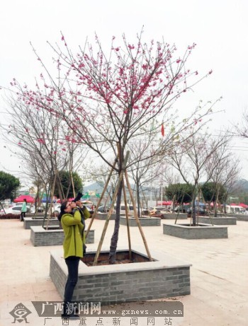 不少游人前去拍摄美丽樱花。广西新闻网记者 谢冬梅 摄