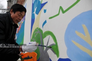 连日来,广西三江召集数名侗族农民画家集体创作200米长的侗族农民画壁画,以特色独具、寓意深刻、色彩艳丽的侗画巧绘“中国梦”,使昔日的闲置旧墙变成“会说话”的精神文明宣传阵地,全力弘扬社会主义核心价值观。
