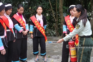 “瑶寨女子志愿消防队”成立后,消防官兵及时对队员进行了培训。培训内容主要为了解火灾危害性、发生火灾后如何报火警、火场逃生方法、如何使用灭火器等各方面的消防基础知识。平日里,志愿者经常挨家挨户为村民发放宣传资料,向村民讲解消防知识,普及消防安全知识。