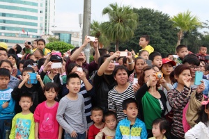 随着阵阵锣鼓声响起,独具当地民族特色的舞炮龙、威风龙鼓队、舞狮、仙马、壮锦、彩凤、游彩架、踩高跷等民俗展演相继登场亮相。今年炮龙节还邀请到南宁市青秀区长塘镇芭蕉龙舞龙表演,身着芭蕉叶的舞龙者让人眼前一亮。巡演队伍所到之处围拢着许多群众,大家纷纷拿起手中的手机、相机记录下精彩的表演瞬间。