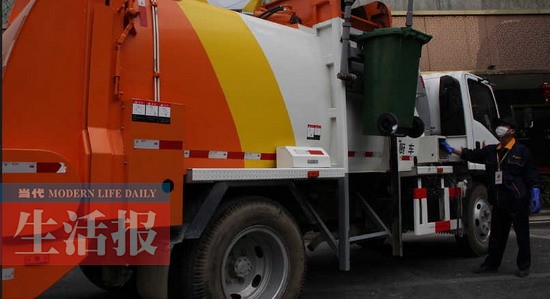 2月28日上午11时许,一辆白色封闭式卡车停在鲁班路一家餐馆门口,工人从厨房拉出一个塑料桶,桶被安放在自动升降机上,带着酸臭味的潲水全部被倾倒进卡车特制的箱体中。餐厨垃圾回收处理的第一步就算完成了。