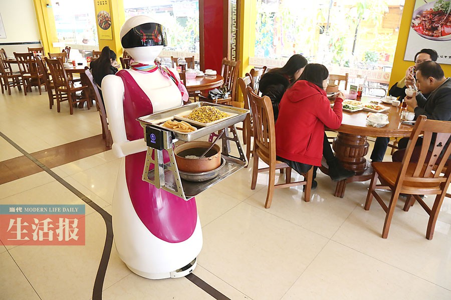 "机器小妹"上菜你满意吗? 路被挡还会"发飙"(图) (2) |