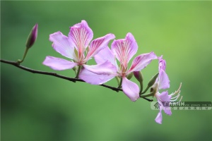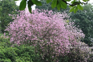 紫荆花,又叫“红花羊蹄甲”,叶片有圆形、宽卵形或肾形,顶端都裂为两半,似羊的蹄甲,故此得名。紫荆花花期在冬春之间,花大如掌,略带芳香,五片花瓣均匀地轮生排列,红色或粉红色,十分美观。紫荆花终年常绿,颇耐烟尘,适合做行道树。紫荆花还是香港特别行政区区花。