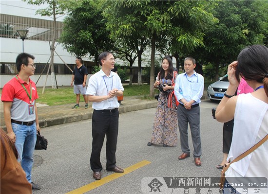 南宁二中校长黄幼岩正在与采访团的记者交流。广西新闻网记者 陈伟冬摄