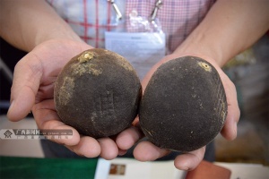 DIY专属于自己的六堡茶,你见过吗?在另一个展位,工作人员提供现场压制六堡茶的服务。观众只需在纸上书写祝福语,工作人员便会将纸放置于六堡茶茶饼上现场压制。这时,观众定制的专属茶叶饼就制成了。