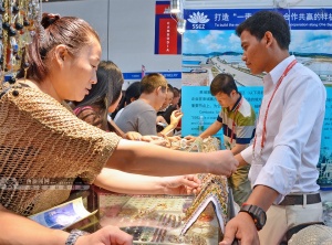 广西新闻网南宁9月21日讯(记者 黄菁菁 冼妍杏 陈仁义)“好漂亮,得给我孙女带一串!”9月21日是第12届中国-东盟博览会公众开放日,南宁市民陈女士在柬埔寨商品展区挑选了约10分钟,决定将一串镶有粉红色水晶的银质手链送给自己的孙女。