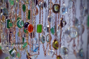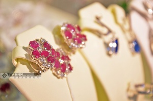 一走进柬埔寨商品展区,琳琅满目的各色珠宝、首饰、银质器皿沿路排开,粉红色、紫色、淡绿色、天蓝色、明黄色……各类珠宝首饰色彩鲜艳夺目,光泽耀眼,吸引了大量女性观众驻足。