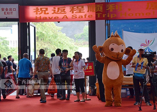 东博会吉祥物“合合”也加入到欢送客商的队伍中。 广西新闻网记者黄菁菁 摄