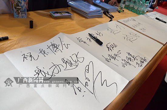 参展参会客商在长卷写下的祝福。 广西新闻网记者黄菁菁 摄