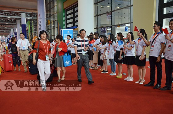 东博会工作人员欢送参展参会客商。 广西新闻网记者黄菁菁 摄