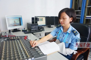 驻桂空军一名女战士盛叶莹回老家探望生病的母亲时,救起一名落水的9岁男孩。男孩得救了,她受伤了,手臂脱臼,至今未好。她一直未向外人说起受伤的经过,直至江西省铅山县青溪服务中心武装部和当地村委联合寄来一封感谢信,大家才得知她救人的经过。图为盛叶莹打着绷带工作。 秦学龙摄(广西新闻网-南国早报)