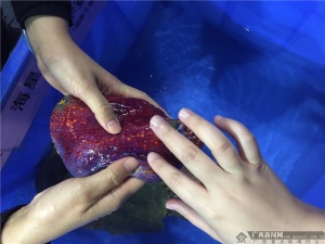 除了这些贝类标本,海底世界的工作人员“蓝精灵姐姐”还带来了国家二级保护动物海苹果、中华鲎、还有活体海星。小朋友们很少看见这些奇形怪状的海洋动物,兴奋之余便打开了话匣子,仔细询问这些动物的习性和生活方式。工作人员表示,这些珍稀的海洋动物是大自然的献礼,为了保护海洋动物,我们应该杜绝捕杀保护海洋动物的行为,只有人与自然和谐相处,才能让地球家园更加美好。