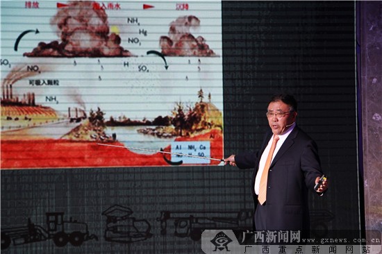 柳工首席科学家初长祥介绍国Ⅲ全系列产品。广西新闻网通讯员 谭园园 摄