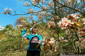 桐花树下的蓝衣壮少女。覃日政摄