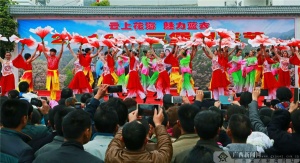 打糍粑,几名壮汉挽袖叉腰甩开膀子,对着大盆子中的糯米舂捣起来,现场做了糯米粑给游客们品尝;哭嫁、跨火盆,父母对出嫁的女儿千叮万嘱,最后接亲场面欢天喜地,给现场的游客朋友分发红蛋,寓意大家一起高高兴兴。