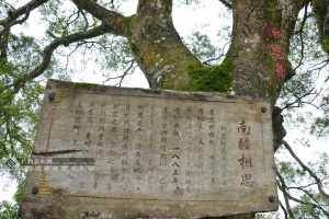 4月8日,“e眼看崇左 助力两文章——网络媒体壮乡三月三南疆行”采访团登上金鸡山,山上云雾缭绕,花儿簇拥,伴着清脆的鸟鸣,显得静谧祥和。"131年前种下的相思果,长成131年的相思树。带着心爱的人,来到此地埋下自己的相思愿。" 国际在线记者看到山上的百年相思树时不禁感慨道。