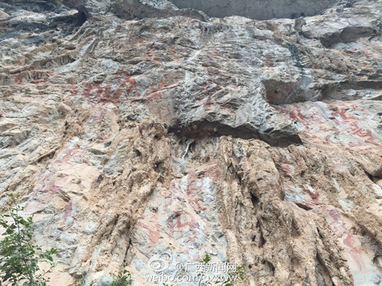 #e眼看崇左#【探访花山神秘壁画 体验多彩壮族文化】8日,“e眼看崇左 助力两文章——网络媒体壮乡三月三南疆行”采访团成员来到崇左市左江探访神秘的花山壁画。江上沿岸峭壁上巨大的赭红色岩画记录了距今约2000多年前的祭祀场景,与山崖、河流和台地共同构成了神秘而震撼的文化景观。花山岩画是中国古代岭南文化发展的一个缩影,涵括了骆越先民巫术宗教文化、图腾崇拜、生产经济文化、思想观念和精神文化等,集中展示了古骆越民族灿烂的稻作文化和舟文化,从中可以了解到古代壮族先民的历史发展状况,在历史、艺术或科学研究上都具有突出的普遍价值。(全媒体报道组) |