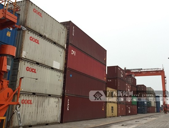 在钦州港码头上,方形的集装箱延绵到视线的尽头。广西新闻网全媒体报道组摄