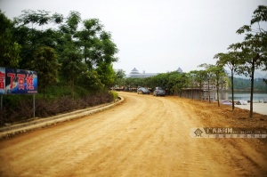 穿过大丰镇云里村内里庄,在距离村庄不远处,一池碧波荡漾的湖水映入记者眼帘,湖边的工地上是一派繁忙的景象。“对面正在施工的是景区的酒店,现在工人正在赶工修建广场和商铺,为了保证今年的生态旅游养生节顺利举办,还有湖对面是我们的珍贵树种博览园已初具雏形,种植了柚木、火力楠、格木、黄花梨、灰木莲、土沉香、西南桦等10多种珍贵树种。”广西上林云里湖现代农业发展有限公司总经理周汉林热情地向记者介绍着景区的建设情况。