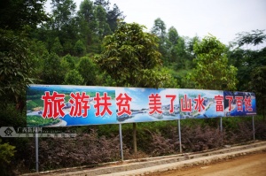 编者按:近年来,南宁市上林县以加快旅游业发展为主线,以创建广西特色旅游名县为契机,充分整合扶贫政策和旅游部门资源,持续地推进以旅游产业为主导的扶贫攻坚工作,推进旅游产业和扶贫产业同时开发、并行发展,实现旅游大开发和贫困农户脱贫致富同享发展成果,呈现出了良好发展格局。2016年4月下旬,广西新闻网派出采访小分队走访上林县鼓鸣寨景区、白圩镇狮螺村山底庄、大丰镇云里村内里庄等地,多角度采访、全面报道上林县开展旅游产业扶贫模式,展示上林县以旅游带动脱贫的新风貌。