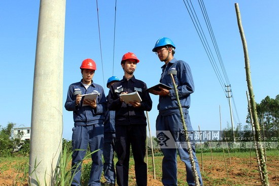 凌勇兵(中)巡线现场。广西新闻网通讯员 秦艳 莫纯贵 摄