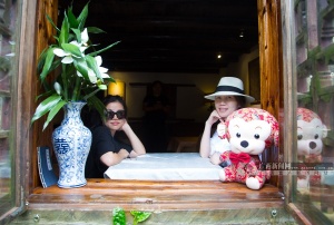 在骥马古村,网媒记者聆听导游讲解骥马潘氏的历史故事,并参观了“囍鹊、德铭轩、传统太极拳馆”这些以桂北文化生活为主题的咖啡屋、客栈及养生休闲馆。这些建筑材料多以竹子、杉树、青石、青瓦、青砖等为主,提升了整个古村落的品质。