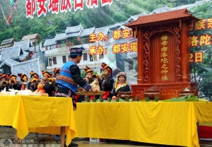 都安是密洛陀的故乡,是中国成立最早、县域幅员面积最大的瑶族自治县。当日,在该县密洛陀文化公园内和广西红水河都安三岛湾国际度假区,还分别开展了对歌、笑酒、斗鸡、斗鸟、射弩、打陀螺等传统民族体育活动和民俗风情节目表演。大批游客纷至沓来,感受布努瑶民族文化魅力,共庆布努瑶一年一度最为隆重的“祝著节”。