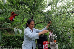 八腊乡是天峨县唯一的少数民族乡,是龙滩珍珠李的主要产地。仅境内的天峨县龙滩珍珠李现代特色产业(核心)示范区,就种植有珍珠李3200亩。据乡党委书记蓝天山介绍,目前全乡种植“珍珠李”3.5万亩,人均种植面积1.37人/亩。预计今年产量1000多万斤,产值5000多万元,全乡人均可“借果”预计增收887元。
