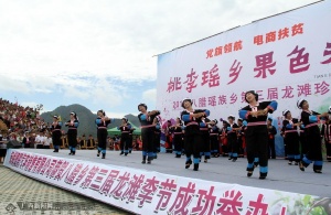 本届龙滩珍珠李节以“创品牌、富农民、助脱贫”为活动主题,以“桃李瑶乡、果色天香”为活动口号,由八腊瑶族乡富万家桃李专业合作社和山垌场核桃专业合作社协办。在开幕式上,天峨县金桂元食品有限公司作为经销商代表发言,柏宁农业(李妃)电商代表电商企业,与龙滩珍珠李龙头企业、合作社代表互签销售协议,让好李“借电”进城,远销区内外。随后,当地群众演员上台表演了原汁原味的民族歌舞节目。