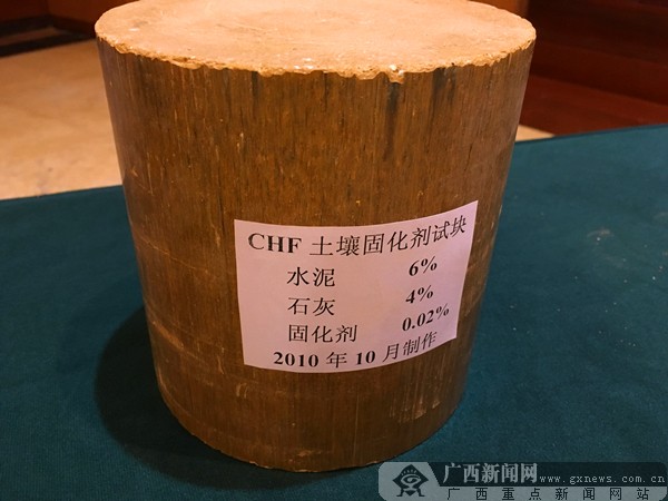 CHF土壤固化剂试验块在新闻发布会上展示。广西新闻网记者 黄勇椋 摄