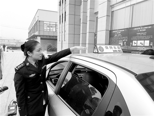 ▲申领学车专用标识后,车管部门将给车辆发放学车专用标识以及自学用车车顶标识。 劳艳燕 摄