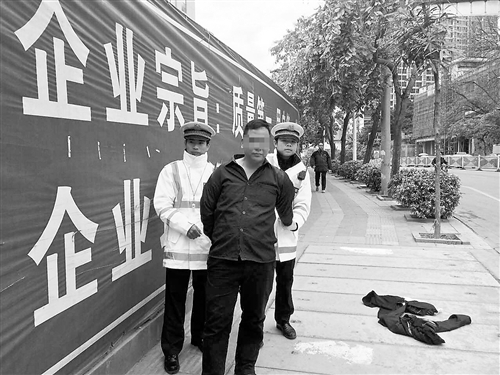 交警四大队协警在巡逻过程中追捕一名偷车嫌疑男子。(南宁市交警支队供图)