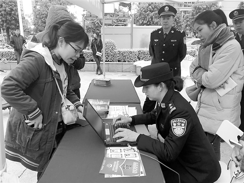 交警为群众办理认领电动自行车手续。劳艳燕 摄