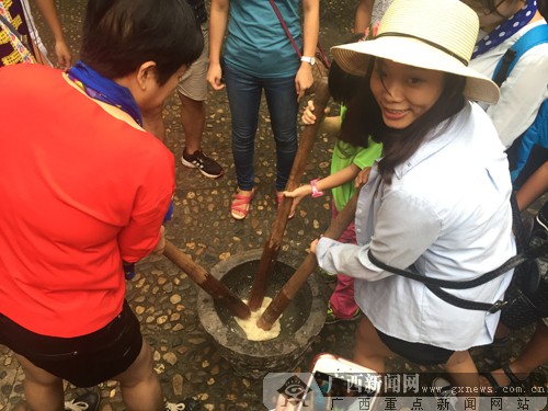 仁寿山庄,网友们现场动手做糍粑。广西新闻网记者 覃鸿图摄