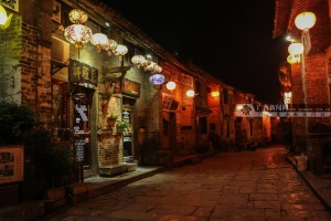 入夜了,房屋房檐上挂着的灯笼点亮了,昏黄而柔软的暖光,营造了静谧的氛围,对于习惯了城市霓虹灯、穿梭于灯红酒绿的人来说,这是难得的安静,可以享受一个人的独处与思考,感受来自内心的平静。