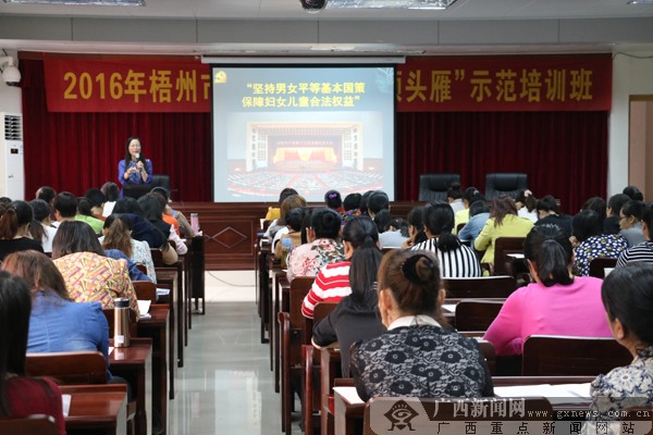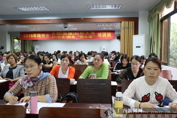 广西新闻网梧州11月23日讯(通讯员 胡亮 卢锐)11月21日,2016年梧州市乡镇(街道)妇联主席暨梧州市村(社区)妇女“领头雁”培训班在梧州市委党校开班。150多名来自全市7个县(市、区)的乡镇(街道)妇联主席及村(社区)女党组织书记参加培训。