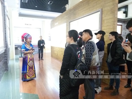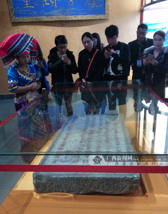 “生态长寿地 三姐文化城”——2016全国重点网络媒体河池行采访团成员在参观宜州博物馆。广西新闻网记者樊成甫摄